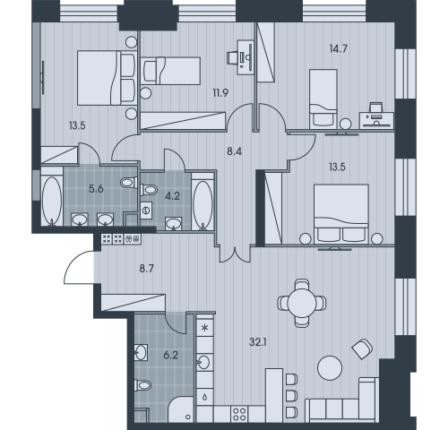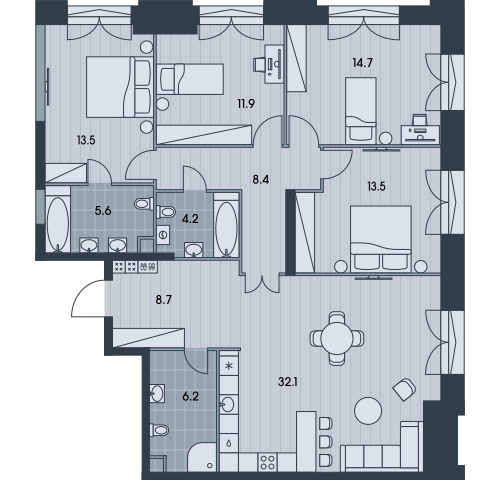 Первая очередь комплекса будет состоять из трех башен с выразительными, фактурными фасадами, выполненными в общей стилистике. Главной изюминкой проекта станет уникальное благоустройство придомовой территории с природным амфитеатром с лиственницами и кленами, дзен-садом, перголами и детскими игровыми маршрутами, где горки и лазалки соседствуют со скульптурными игровыми элементами в стиле Исаму Ногучи. В таком дворе каждый сможет найти любимое место: для медитаций, занятий спортом, общения с соседями или работы.