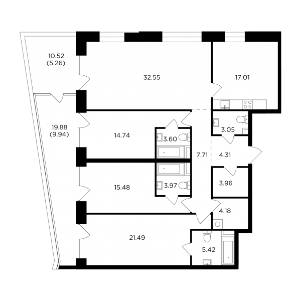 Собственный патио на первом этаже, просторные кухни-гостиные, увеличенная поверхность остекления, угловое остекление, master bedroom с гендерными санузлами, кладовые при кухне, лоджии с открытой частью, выходящей на воду и исторический центр, а также ванные комнаты с окном – здесь каждый сможет подобрать планировочное решение по душе. Кроме того, на верхних этажах запроектирован пентхаус с увеличенными потолками, местом для установки камина и просторной террасой.