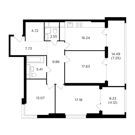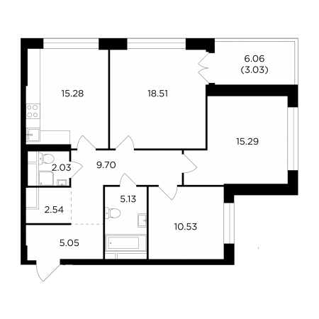 Покупателям доступны квартиры классического и евроформата площадью от 43 кв. м до 177 кв. м. Можно выбрать квартиру с панорамным остеклением, в том числе угловым, с одной или несколькими лоджиями, окном в ванной комнате и мастер-спальни (master-bedroom). На последних этажах есть возможность установки камина.