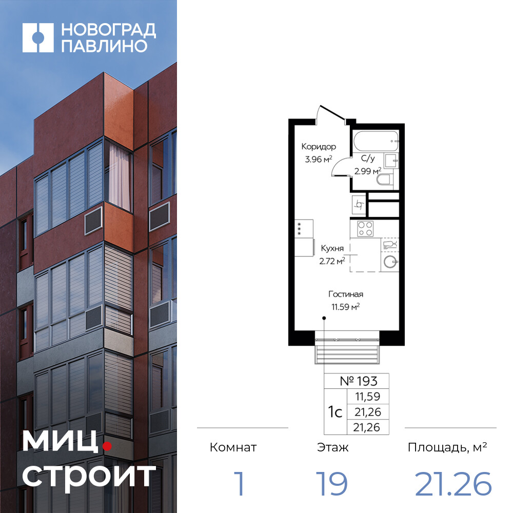 *Стоимость указана с учетом 5% скидки, базовая цена такой 26-метровой жилплощади составляет 2,16 млн рублей. С приблизительными ценами на недвижимость в Новограде «Павлино» мы познакомим Вас ниже, подробности же есть на официальном сайте ЖК.
