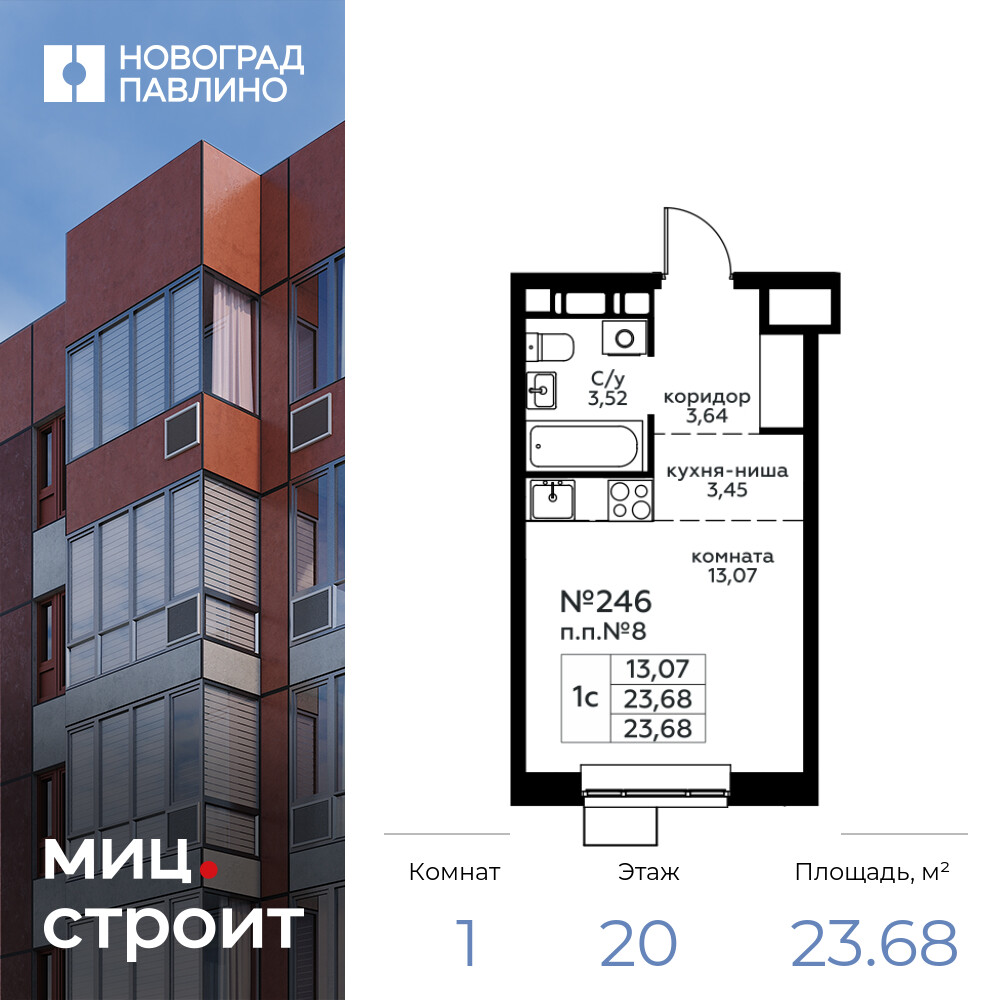 *Стоимость указана с учетом 5% скидки, базовая цена такой 26-метровой жилплощади составляет 2,16 млн рублей. С приблизительными ценами на недвижимость в Новограде «Павлино» мы познакомим Вас ниже, подробности же есть на официальном сайте ЖК.