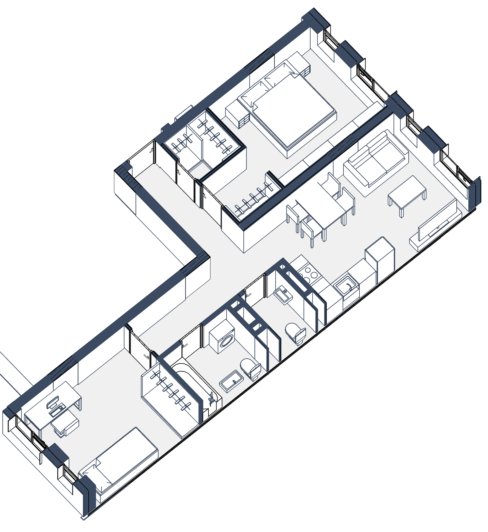 Внутренняя отделка квартир начинается с электрики и горизонтальной разводки отопления. Выводы для радиаторов сделаны из стены - удобно мыть пол, не нужно вырезать отверстия в ламинате. Когда работы с сетями и коммуникациями закончены, начинается отделка стен. Штукатурка наносится в теплом сухом помещении. Жителям останется нанести на ровные стены грунтовку и наклеить обои. После устанавливаются радиаторы и розетки (чтобы все элементы остались чистыми). На полу в ванной - гидроизоляция, сверху цементно-песчаная стяжка. Далее в квартире укладывается пол Knauf. Он теплый, ровный, легкий при монтаже. За счет слоя керамзита обеспечивает хорошую звукоизоляцию. Пол готов к финишному покрытию (ламинат, плитка, линолеум).