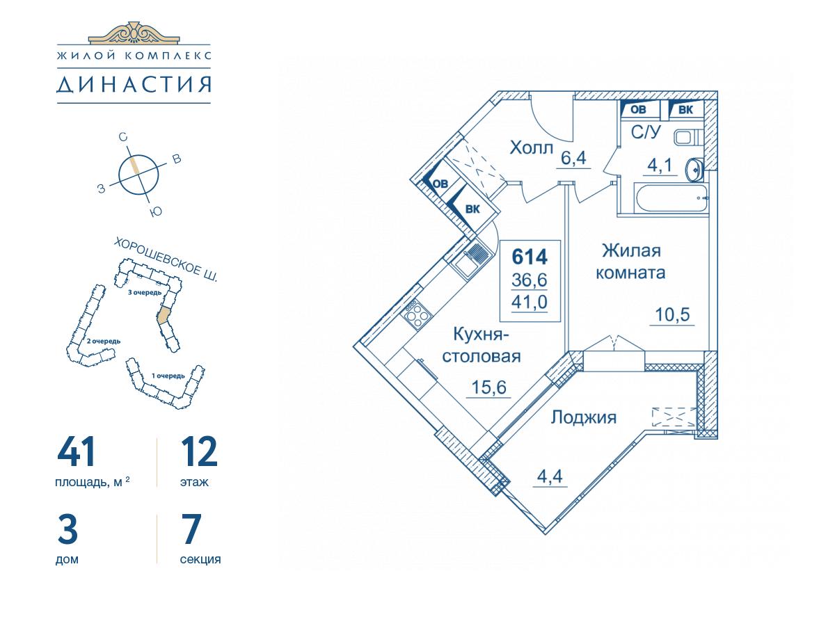 Третий дом — завершающий этап строительства жилого комплекса «Династия». Внешний фасад выходит на Хорошевское шоссе, его декоративный ажурный орнамент является визитной карточкой проекта. Оригинальная геометрия дома обеспечивает выбор планировочных решений из более чем 80 базовых вариантов. Из девяти секций дома — две угловые, две торцевые и поворотная с широким углом обзора. Благодаря этому в ряде однокомнатных квартир предусмотрено четыре окна и лоджия, треть квартир имеют две и более лоджий, двух- и трехкомнатные — функциональные ниши для организации систем хранения. Площади однокомнатных квартир от 40 до 55 кв. м, двухкомнатных — от 59 до 80 кв. м, трехкомнатных — от 86 до 102 кв. м. В числе особых предложений — 16 квартир с открытыми террасами, квартиры с окном-розой диаметром 5,4 м.