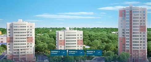 Площадь жилья варьируется от 33,9 до 93,3 кв. метра, а стоимость начинается от 2,515 млн рублей. Все три дома построены по монолитной технологии, высота их составляет 9 (2 корп.), 12 (1 корп.) и 17 (3 корп.) этажей.