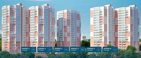 Данный жилой комплекс включает в себя шесть готовых 17-этажных корпусов-башен, также возведенных по монолитной технологии. Квартиры со скидками предлагаются в домах под номерами 1, 2, 5 и 6. Ограничений по количеству комнат продавец не делает, но само предложение акционных квартир, как и в предыдущем случае – ограничено. Размер скидки составляет 10 процентов. На все четыре корпуса, участвующих в акции, сегодня приходится порядка 25 предложений