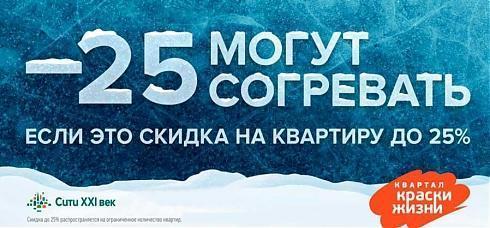 В разделе «Акции», размещенном на официальном сайте «Красок жизни», сегодня можно найти информацию о снижении цен на квартиры в ЖК. Максимальный размер скидки составляет 25%, а воспользоваться этим заманчивым предложением от «Сити-XXI век» можно до конца текущего месяца.