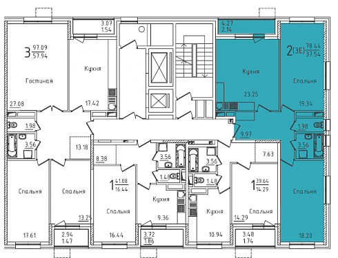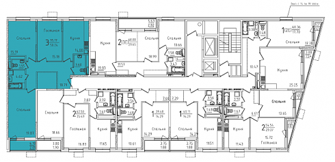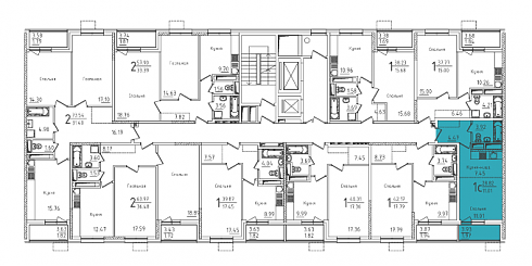 Однокомнатную квартиру (всего 309 шт.) можно купить в любой секции ЖК «Михайлова, 31», площадь их варьируется от 37,6 до 60,3 кв. метров, а цена – от 5,230 млн рублей до 8,299 миллиона. Меньше всего однушек расположено в секции под номером 1, там их ровно 17, по одной на жилой этаж. И все они одинаковые, линейные, с 10-метровыми кухнями и раздельными санузлами. Площадь такой квартиры 37,9 кв. метров, а стоимость меняется в зависимости от этажа и минимальная составляет 5,333 млн рублей. Между прочим, трехкомнатных квартир в рассматриваемой первой секции тоже 17, и это одни из самых маленьких трешек в комплексе, одни из самых недорогих. Стоимость квартиры, расположенной на третьем этаже второй секции, начинается от 9,855 миллиона рублей, планировка линейная, площадь – 72,5 квадрата, из них кухня 12 с лишним квадратов, комнаты по 13-16 кв. м, есть гостевой санузел. Основным предложением в секции являются двухкомнатные квартиры в количестве 85, вариантов планировок много.