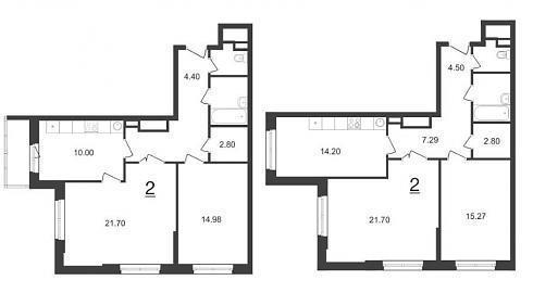 В продаже также осталось порядка 50 квартир в корпусах «Альфа» и «Бетта», ввод в эксплуатацию которых состоялся осенью прошлого года. Здесь, помимо однокомнатных (41,4 и 43,4 кв. м) и двухкомнатных (67,2 - 74,0 кв. м) квартир, можно найти трехкомнатные метражом от 87,5 до 91,1 кв. м. Минимальная стоимость жилья в этих домах составляет 4,700 млн рублей, максимальная – 7,901 миллиона.