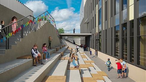 Для спуска к реке здесь предусмотрена удобная лестница. Площадь для мероприятий будет доступна для круглогодичного использования: летом здесь будет концертная сцена, лекторий, открытый кинотеатр и зона выставок, а зимой — каток и павильоны для проведения ярмарок. Кроме того, IND architects также разработали проект обновления двухуровневого стилобата ЖК AQUATORIA: здесь появятся рестораны и лаунж-кафе с открытыми верандами и панорамным остеклением.
