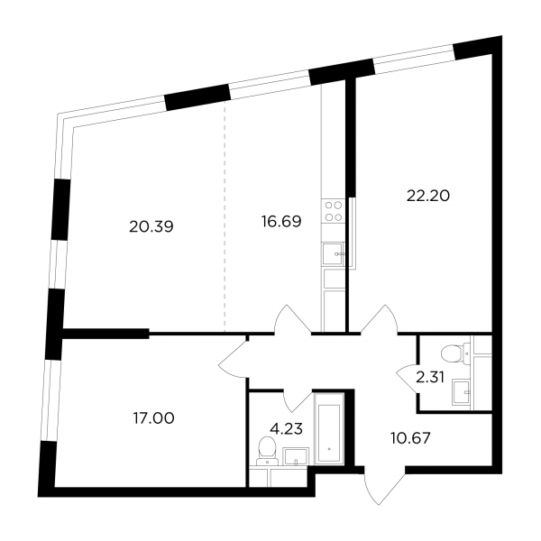 Новый корпус состоит из трех 30-этажных секций, в которых запроектировано 513 квартир, реализуемых как с ремонтом от застройщика, так и без него. В жилой фонд дома включены самые различные планировочные решения, как в классическом, так и в европейском формате – от небольших и компактных студийных вариантов, до интересных четырехкомнатных квартир. Площадь их варьируется от 23,6 кв. метра до 130. Высота потолков в некоторых предложениях достигает 3,2 метра. Также можно приобрести лот с террасой или панорамным остеклением – они располагаются на последних этажах корпуса.