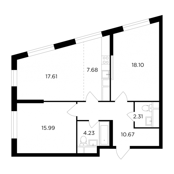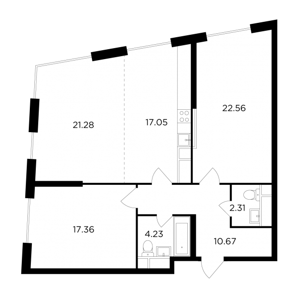 Первые продажи начались в 28-этажных монолитных домах, рассчитанных в общей сложности на 746 жилых помещений площадью от 29,98 до 170,54 кв. метра, с количеством комнат от одной до четырех и высотой потолков, достигающей 3,3 м.