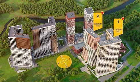 Разрешение на строительство первых двух корпусов комплекса (№ 1 и 2) было получено в июле прошлого года. Всего же жилых домов на генплане восемь. Мы можем наблюдать как отдельно стоящие башни, так и многосекционные корпуса.