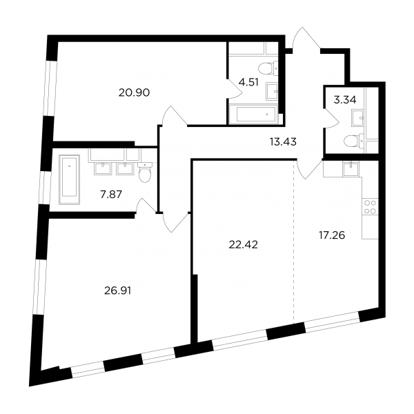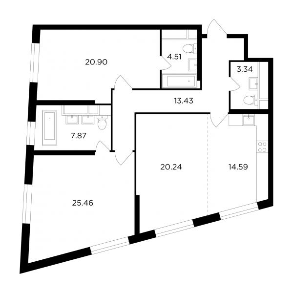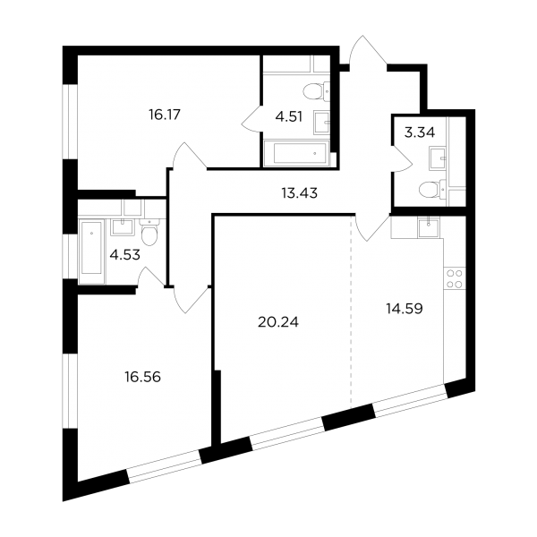 Первые продажи начались в 28-этажных монолитных домах, рассчитанных в общей сложности на 746 жилых помещений площадью от 29,98 до 170,54 кв. метра, с количеством комнат от одной до четырех и высотой потолков, достигающей 3,3 м.
