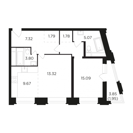 В продаже на данный момент находится менее полусотни квартир. Ниже мы представим вашему вниманию сводные таблички с нижними и верхними границами цен и площадей (на некоторые предложения стоит бронь).