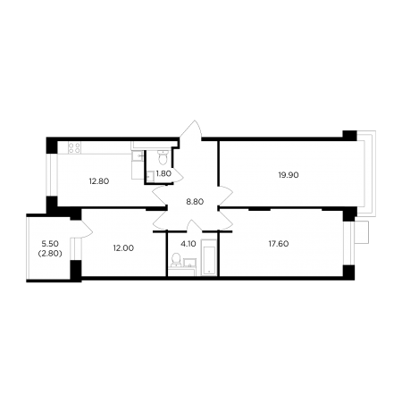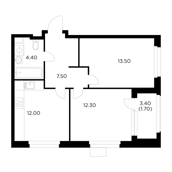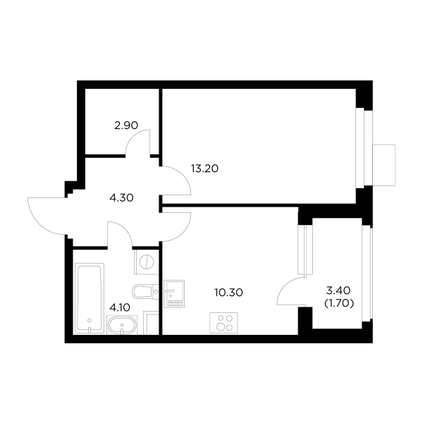 Мебель в квартирах расположена с применением принципа максимальной эргономичности и зонирования пространства. В однокомнатных квартирах есть все, что необходимо для комфортной жизни небольшой семьи: прихожая, кухня с небольшой столовой зоной, в жилой комнате может быть расположена рабочая зона, гардероб, двуспальная кровать или диван, а также уютный уголок для чтения. Просторные лоджии позволяют даже в однокомнатной квартире создать уютный уголок для отдыха и добавить ей простора.