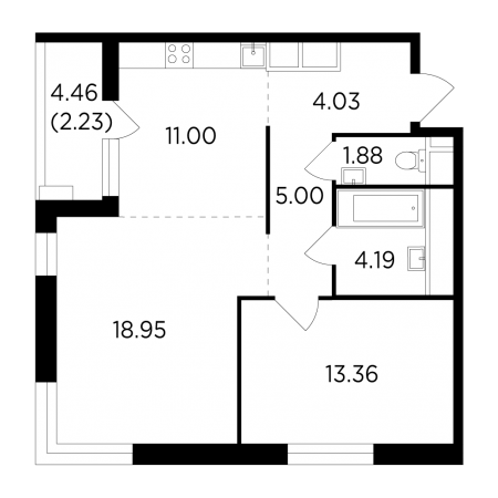 Таблица 2. Свободное жилье без отделки в корпусе 2