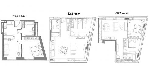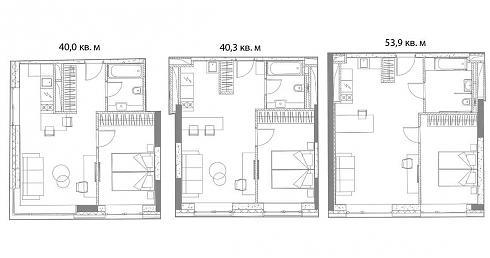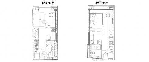 Самые маленькие 20-метровые студии находятся в первой секции. Во вторую секцию попали студии площадью от 26,43 до 26,83 кв. м, получившие обозначение «standart»: