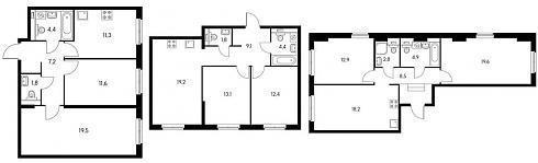 | Июль 2019 | 98,1-122,8 м2 | 20 051 640 - 23 572 480 ₽ | ~198 291 ₽ | |