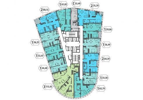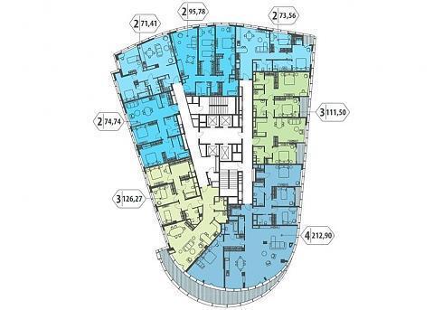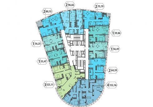 Чтобы там не рассказывали маркетологи иных застройщиков, но важнейшей характеристикой новостроек, относящихся к бизнес-классу, прежде всего, являются площади представленных в них квартир, и по этому показателю данный ЖК однозначно соответствует заявленной категории. Что касается непосредственно выбора квартир, то здесь разговор идет не просто о большом количестве планировок, а о просто-таки кардинальном идеологическом различии представленных в комплексе вариантов.