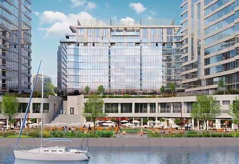 Наземная часть стилобата корпусов С1 и С2 имеет один парковочный этаж, а наземная часть стилобата корпусов В1 и В2 состоит из двух этажей, один из которых предназначен для размещения коммерческих объектов (в ПД упомянуты исключительно офисы и кафе), а на втором находятся 19 квартир, наиболее приближенных к желанной воде.