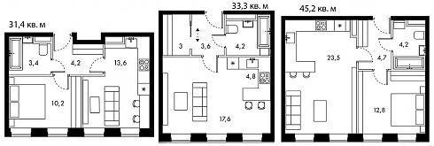 | Апрель 2019 | 31,5-49,1 м2 | 8 523 900 - 12 014 352 ₽ | ~256 728 ₽ | |