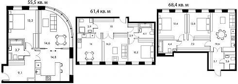 | Ноябрь 2019 | 55,5-83,4 м2 | 14 440 455 - 22 254 849 ₽ | ~265 908 ₽ | |