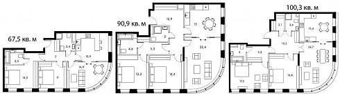 | Сентябрь 2019 | 67,5-100,3 м2 | 17 715 549 - 24 605 078 ₽ | ~253 417 ₽ | |