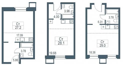 | Май 2019 | 27,2-29 м2 | 7 185 370 - 8 328 162 ₽ | ~277 027 ₽ | 23.25% |