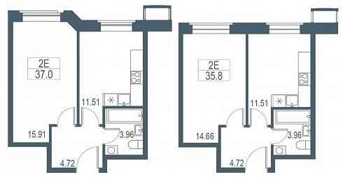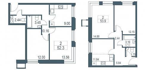 Разница в площади реальных евро-двушек составляет внушительные девять метров: