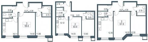 | Январь 2020 | 35,8-61,9 м2 | 8 706 560 - 15 245 970 ₽ | ~249 506 ₽ | 8.2% |