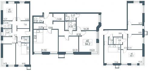 В категории четырехкомнатных евро-квартир разделительная черта проходит на уровне 90 квадратов, хотя и до этой цифры можно легко подобрать себе подходящий вариант (благо, их тут хватает):