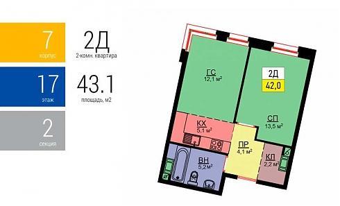 | Декабрь 2017 | 33,7-52,5 м2 | 5 797 000 - 8 662 500 ₽ | ~170 112 ₽ | 7.35% |
