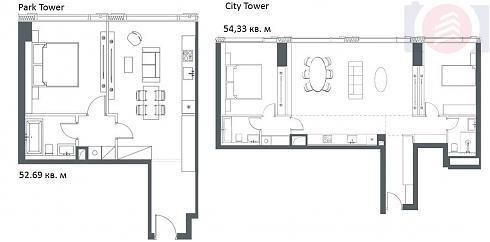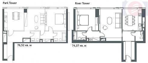Двухкомнатные квартиры в Park Tower и River Tower обладают почти одинаковыми планировками: