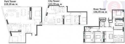 Самые «маленькие» квартиры представлены в Park Tower, где они названы однокомнатными, и в City Tower, где они почему-то называются трехкомнатными: