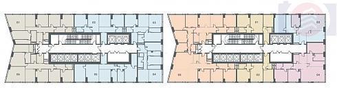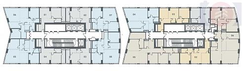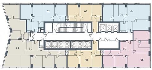 Башню City Tower полностью занимают жилые помещения, офисов тут нет, а конфигурация квартир на этажах говорит о том, что этот корпус по уровню комфорта не имеет себе равных во всем комплексе – количество квартир на его этажах не превышает четырех. Лифтов, кстати, здесь тоже будет 5, и в этом плане на поэтажные планы из презентации проекта ориентировать не стоит: