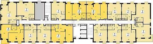 Согласно проектной декларации, в Комплексе, начиная со второго этажа, размещаются 272 апартамента. Однако, на поэтажном плане присутствует серое пятно, которое продавцы идентифицируют как 17-метровую студию, еще не поступившую в продажу. Итого, на этаже находятся 17 помещений, расположенных по коридорной системе: