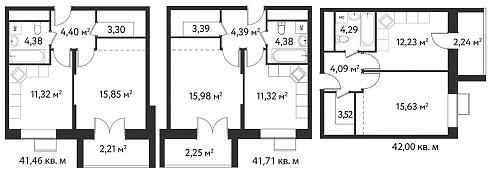 | Январь 2019 | 41,46-42 м2 | 8 292 000 - 9 408 000 ₽ | ~213 253 ₽ | |