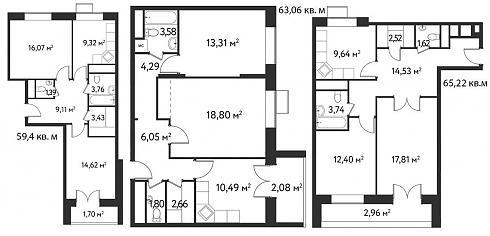 | Ноябрь 2018 | 59,4-65,22 м2 | 12 177 000 - 14 022 300 ₽ | ~211 285 ₽ | |