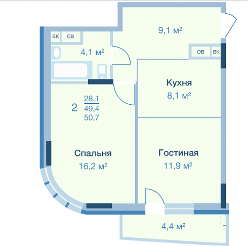 По общему правилу, покупатель получает квартиру с выполненной стяжкой и построенными межквартирными перегородками. При этом «МОДО ГРУПП» предлагает воспользоваться опцией, которая, полагаем, будет весьма востребована: на этапе строительства дома покупатель сможет реализовать возможности, предоставляемые «свободной планировкой», и попросить Застройщика перенести внутриквартирные стены по своему усмотрению. Дело в том, что базовые планировки, предлагаемые на официальном сайте Комплекса, выглядят не совсем однозначно – не всех устроят встречающиеся здесь шести и восьмиметровые кухни, не так просто организовать жилое пространство в двухкомнатных квартирах площадью 50,7 кв. м с двумя же окнами.
