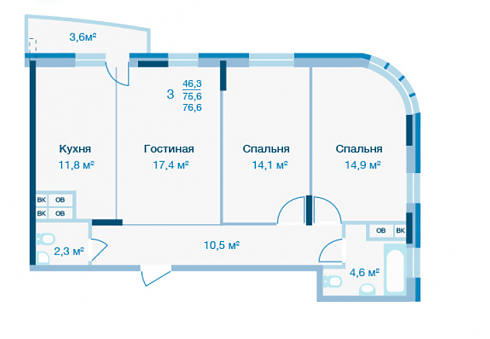 | Январь 2018 | 75,3-76,6 м2 | 11 596 200 - 16 852 000 ₽ | ~188 399 ₽ | |
