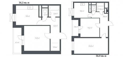 | Январь 2020 | 59,4-69,4 м2 | 14 612 400 - 16 968 300 ₽ | ~246 724 ₽ | |