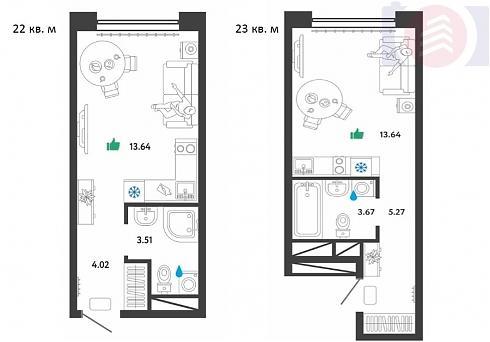 Метраж студий, подходящих под классическое представление об этом продукте, не превышает 23 кв. м. В «Шухове» это будет самый обычный пенал, к которому в «Бекетове» добавляется небольшой аппендикс: