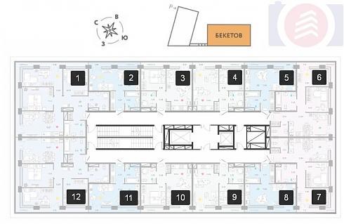 Дом Бекетов: 11 этажей (1 секция), 138 апартаментов, 9 коммерческих помещений.