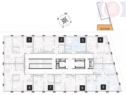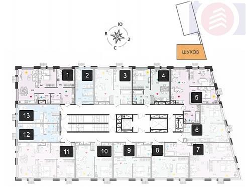 В корпусе «Шухов» тоже есть «стандартные» этажи, на которых находятся по 13 апартаментов: