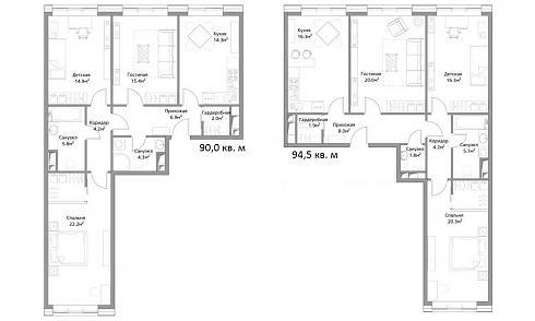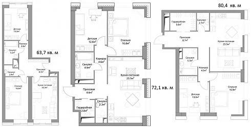 Три изолированные комнаты появляются в вариантах с площадью свыше 90 кв. м: