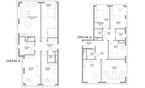 Наибольшие площади достались условно и реально четырехкомнатным квартирам: