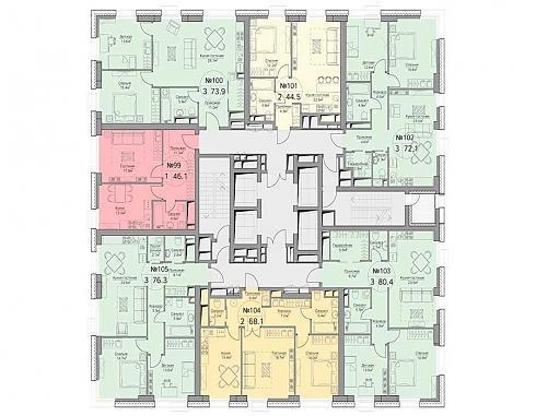 В корпусе №1 «Andante» на этаже также размещено по 7 квартир: