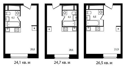 Напрочь лишенные балконов студии выделяются лишь габаритами санузлов: