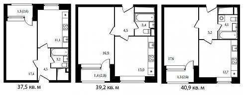 Однокомнатные квартиры площадью до 41 кв. м, имея схожую компоновку, отличаются размерами кухни: