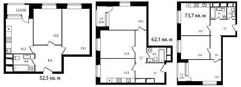 | Апрель 2019 | 52,5-73,7 м2 | 8 242 500 - 12 931 000 ₽ | ~169 388 ₽ | |